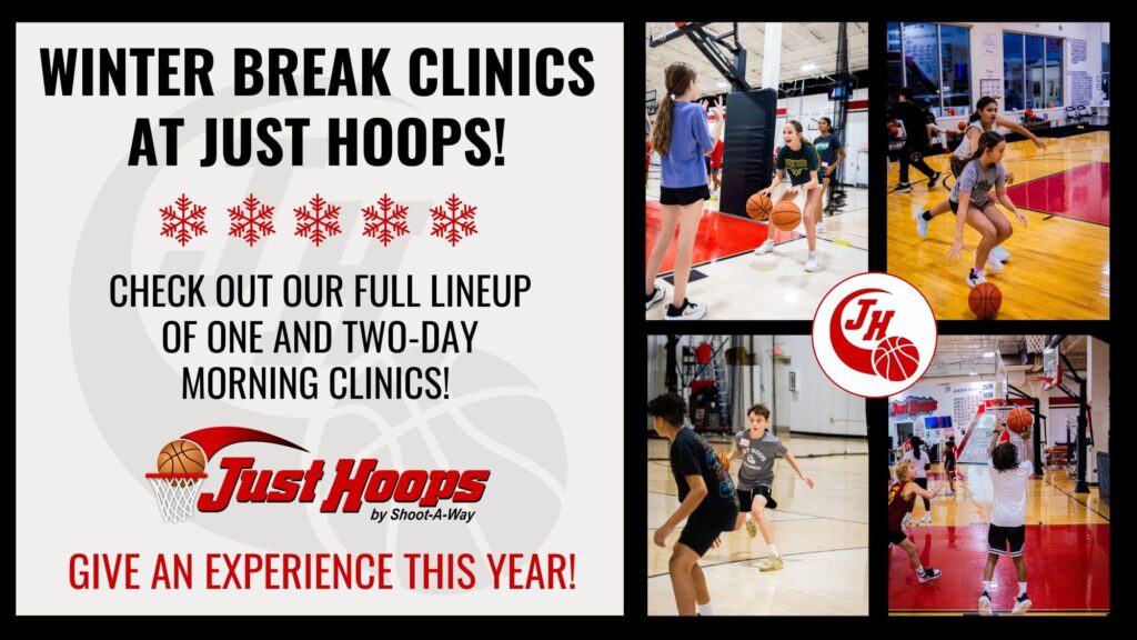 Just Hoops hosts Winter Break 1- and 2-day morning clinics at both facilities. These sessions are a great way for players to get time on the court during their holiday break, stay sharp for upcoming games, and continue developing their skills. Check out the full lineup of clinics and sign up today!