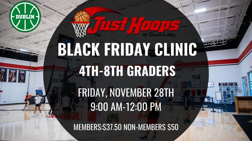 Just Hoops Black Friday Offensive Skills Clinic will challenge players to improve their offensive skill set through a variety of drills and competitions. The clinic will teach offensive fundamentals such as shooting, passing, and ball-handling, as well as, moving without the ball, proper spacing, and screening principles.