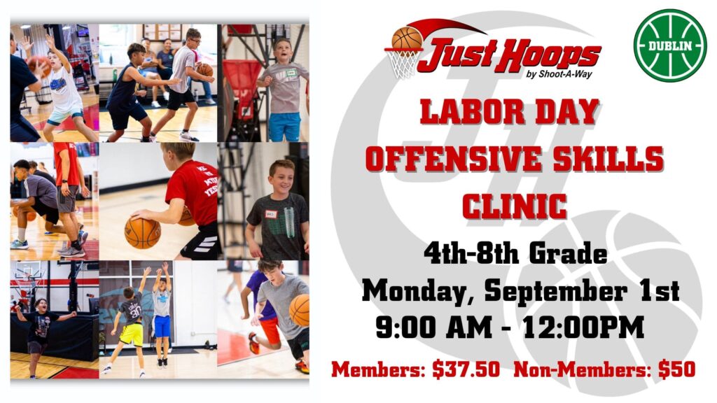 The Labor Day Offensive Skills Clinic will challenge players to improve their offensive skill set through a variety of drills and competitions. The clinic will teach offensive fundamentals such as shooting, passing, and ball-handling, as well as, moving without the ball, proper spacing, and screening principles. Have fun learning the game on your day off school!