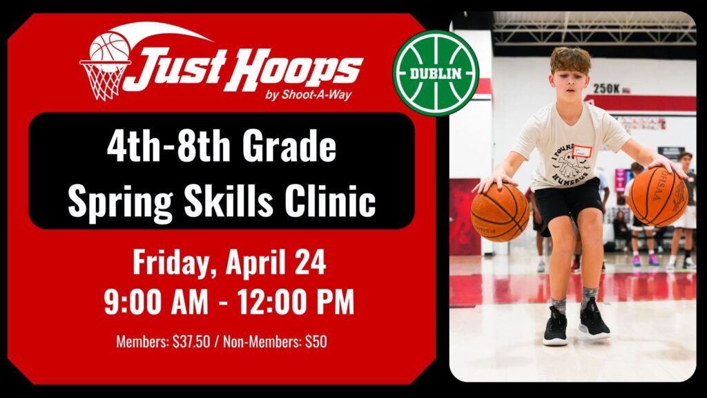 The Just Hoops Spring Skills Clinic is designed to sharpen every part of a player’s game. Through focused drills, competitions, and live play, athletes will improve their shooting, ball-handling, passing, and overall offensive feel. Players will also learn how to move without the ball, create space, and understand key offensive concepts like spacing and screening. It’s the perfect way to build confidence and stay sharp this spring.