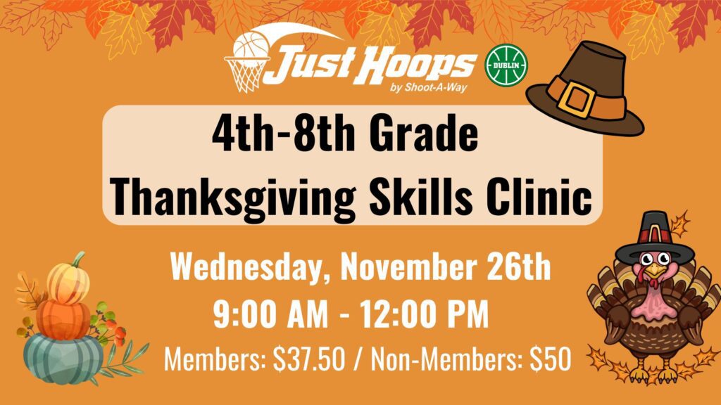 The day before Thanksgiving is a great day to reserve your spot for a morning of skill development with drills and competitions. The clinic will focus on ball-handling, finishing, pivoting & shooting. Players will be challenged in an encouraging learning environment to test their skills to better understand what they are capable of through hard work.