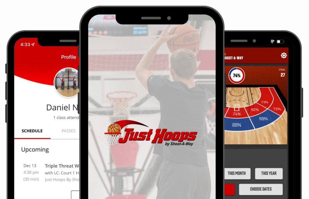 Easily manage your Just Hoops scheduling and account with the Just Hoops By Shoot-A-Way mobile app. Available for both Android and iOS, this free app provides easy access to reserve court time sessions, sign up for classes, schedule personal training, and track your career shooting statistics.